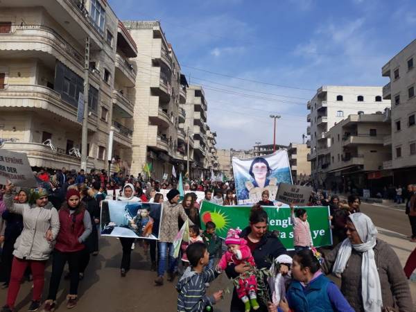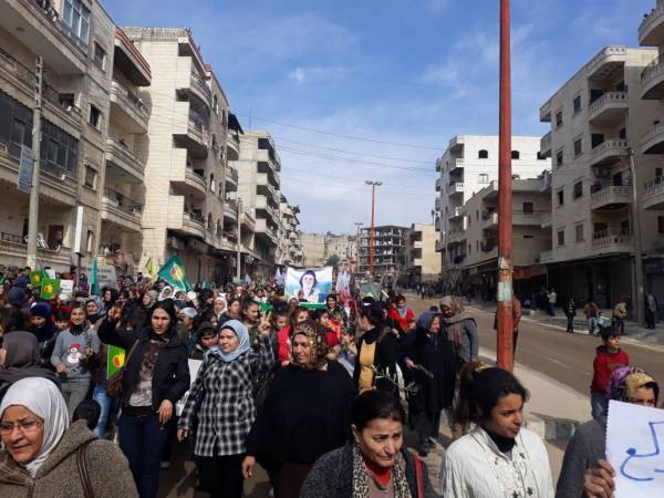 Tens of thousands of women living in Afrin have taken to the streets against the invasion attacks launched on January 20.